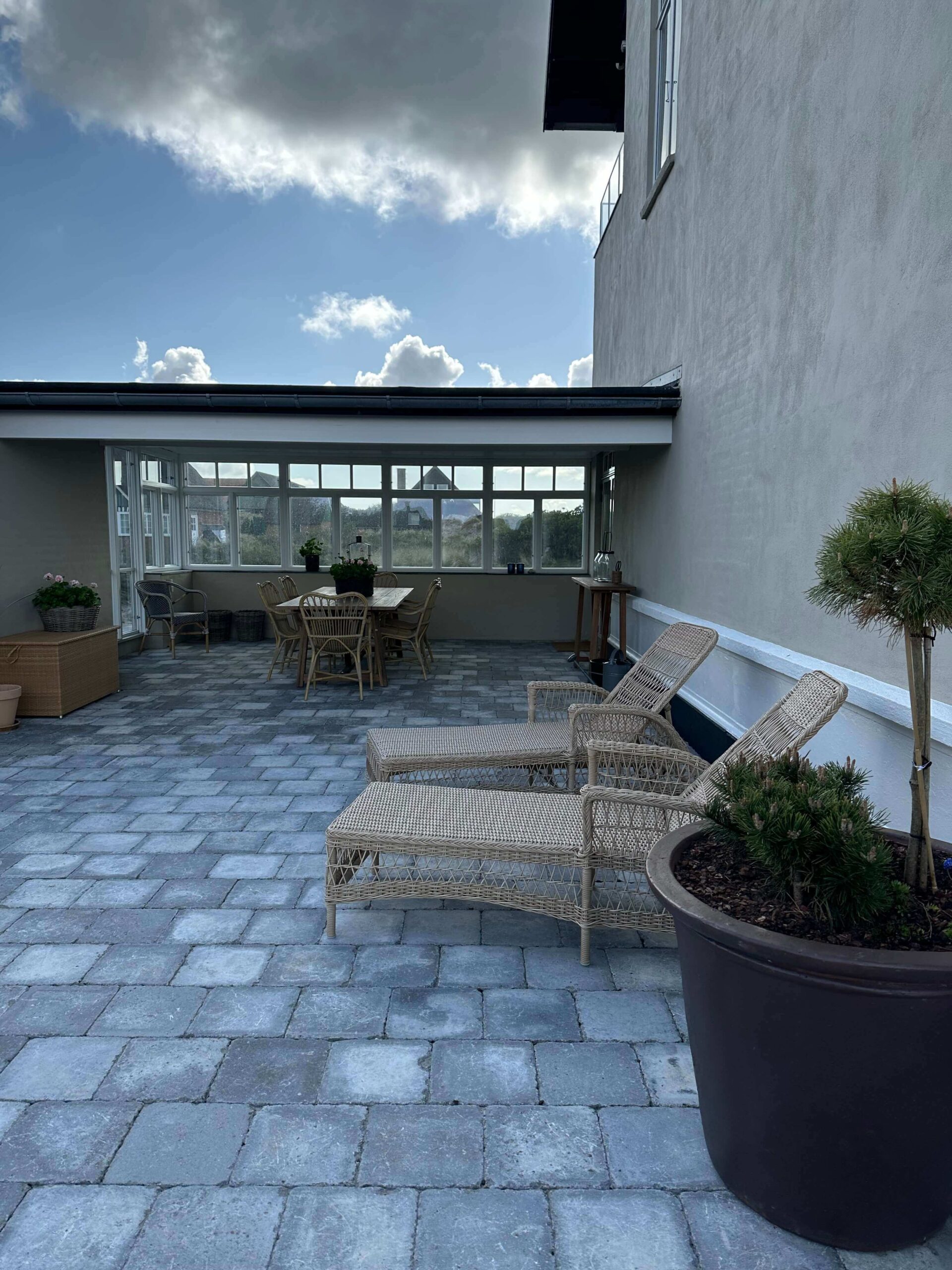 - Terrasser, kroge og udeområder med komfortable havestole og solvogne.